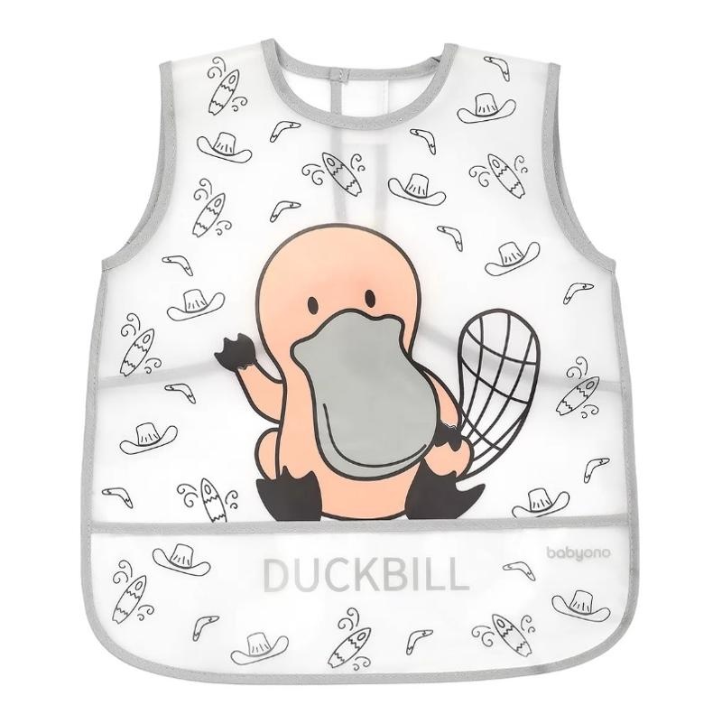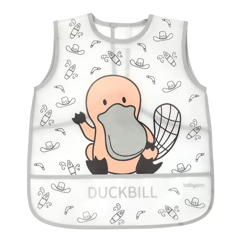 Bryndák pro děti ve věku 12m+ . Vlastnosti: - chrání oblečení dítěte před znečištěním během jedení nebo hraní - vyrobený z lehkého a jednoduše čistitelného plastového materiálu - uzávěr na suchý zip - praktická kapsa - ideální pro použití v mateřské škole / předškolním zařízení - trendy design a veselý motiv - složení: 100% EVA - čištění: vlhkým hadříkem - rozměry: 30 x 35 cm Odstraňte všechny bezpečnostní prvky, které by mohly být nebezpečné pro dítě. Výrobek by měl být zkontrolován před každým použitím. Při prvních známkách poškození nebo opotřebení jej zlikvidujte. Vždy používejte pod dohledem dospělé osoby. Výrobek není hračka. Doporučujeme uchovat obal pro informaci. Obal uchovávejte na místě nepřístupném dětem. Adresa dodavatele: Babyono sp. z o.o., Kowalewicka 13, 60-002 Poznań, Poland. +48 61 83 90 520, info@babyono.pl, www.babyono.com