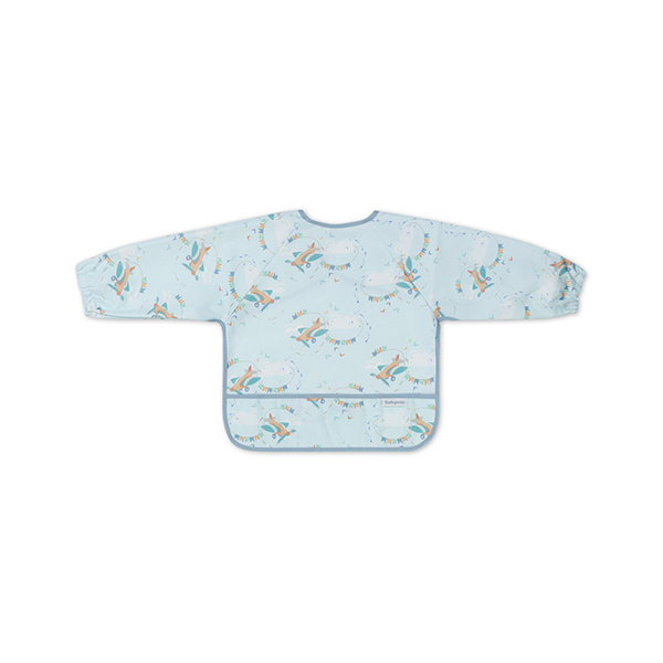Bryndák s dlouhým rukávem je chytrý pomocník, který ochrání oblečení Vašeho miminka. Během jídla zajišťuje přední část oblečení i rukávy, které se obvykle ušpiní. Díky pružným gumičkám dobře přilne k malým ručičkám miminka. Bryndák s rukávy má také praktickou kapsu na drobky, která zachycuje zbytky jídla. Zástěra s rukávy je voděodolná a snadno se čistí, takže se osvědčí, když se děťátko učí jíst samo. Zapínání bryndáku můžete libovolně přizpůsobit velikosti krku miminka. Vlastnosti Ochrana proti nečistotám Bryndák s rukávy dokáže zajistit oblečení Vašeho miminka před skvrnami. Ukáže se Vám to při každodenním stolování, kdy se Vaše děťátko učí jíst, při hrách, ale i při uměleckých aktivitách. Zapínání na suchý zip Můžete si být jisti, že děťátko se bude v zástěře cítit pohodlně. Díky nastavitelným suchým zipům nic nebude odírat krk Vašeho miminka. Sáček na drobky Praktická řešení jsou vždy nejlepší. Sáček vpředu bryndáčku zachycuje zbytky jídla. Voděodolný Bryndák s rukávy je voděodolný a snadno se čistí. Pokud se zašpiní, můžete jej volně prát v pračce. Přizpůsobeno dětským ručičkám Díky pružným gumičkám na rukávech zástěra ještě lépe chrání dětské oblečení před nečistotami. Snadno se přizpůsobí malým ručičkám miminka. Materiál: 100% polyester Velikost: 74 x 36 cm Doporučený věk: 6 měsíců až 2 roky Odstraňte všechny bezpečnostní prvky, které mohou být nebezpečné pro dítě. Výrobek je třeba zkontrolovat před každým použitím. Pokud se objeví první známky poškození nebo opotřebení, vyhoďte jej. Vždy používejte pod dohledem dospělé osoby. Výrobek není hračka. Doporučujeme uchovat obal pro informační účely. Obal uchovávejte na místě nepřístupném dětem. Dodavatel: Babyono sp. z O.O., Kowalewicka 13, 60–002 Poznań, Poland. +48 61 83 90 520, info@babyono.pl, www.babyono.com