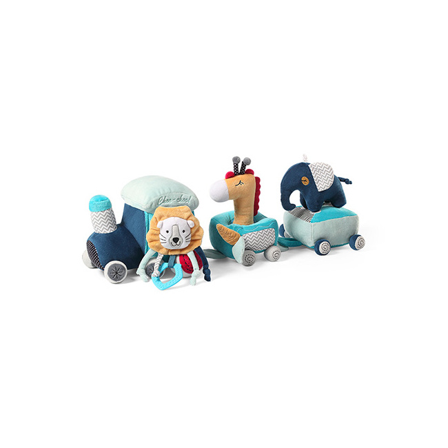 Vláčková sada vzdělávacích hraček Safari train se skládá z lokomotivy se dvěma vagóny a připojenými plyšovými hračkami: pískajícími, chrastícími a šustícími. Hračka seznamuje dítě s rozmanitým světem barev, zvuků a tvarů. Díky přichycení na suchý zip a důmyslně navrženým prostorům pro hračky lze vytvářet zajímavé kombinace, které podněcují kreativní myšlení. Vlastnosti: - skládá se z několika dílů, které lze připevnit pomocí suchého zipu - to stimuluje mozek dítěte a rozvíjí kognitivní schopnosti, jakož i učí prostorové myšlení - jemný zvuk vyzvánění má uklidňující účinek na děťátko - pískací prvky ukryté v hračce naučí dítě vztahům příčiny a následku - barevné uzlíky stimulují dětský hmat a šustící prvky dětský sluch - vyrobeno z kvalitních materiálů s důrazem na každý detail Bezpečnost: hračky splňují bezpečnostní normy platné v Evropské unii. Parametry: - Prvky soupravy: vláček se dvěma vagóny, šustící kousátko ve tvaru lva, pískací hračka ve tvaru žirafy, chrastítko ve tvaru slona - Materiál: 100% polyester - Hmotnost: 0,70 kg - Vhodné pro děti od narození - Rozměry: 41 x 18 x 12 cm Adresa dodavatele: Babyono sp. z o.o., Kowalewicka 13, 60-002 Poznań, Poland. +48 61 83 90 520, info@babyono.pl, www.babyono.com Odstraňte všechny ochranné prvky hračky, které by mohly být nebezpečné pro dítě. Před každým předáním hračky dítěti zkontrolujte její stav. Pouze nepoškozená hračka zaručuje bezpečné používání vašemu dítěti. Vyhoďte hračku, jakmile zjistíte první známky poškození. Hraní se doporučuje pod dohledem dospělé osoby. Hračka odpovídá normě EN 71. Doporučujeme uchovat obal pro informaci. Obal uchovávejte na místě nepřístupném dětem. Obal a upevňovací prvky nejsou hračkou a mohou představovat nebezpečí pro zdraví dítěte. Adresa výrobce: Babyono sp. z o.o., Kowalewicka 13, 60-002 Poznań, Poland. +48 61 83 90 520, info@babyono.pl, www.babyono.com