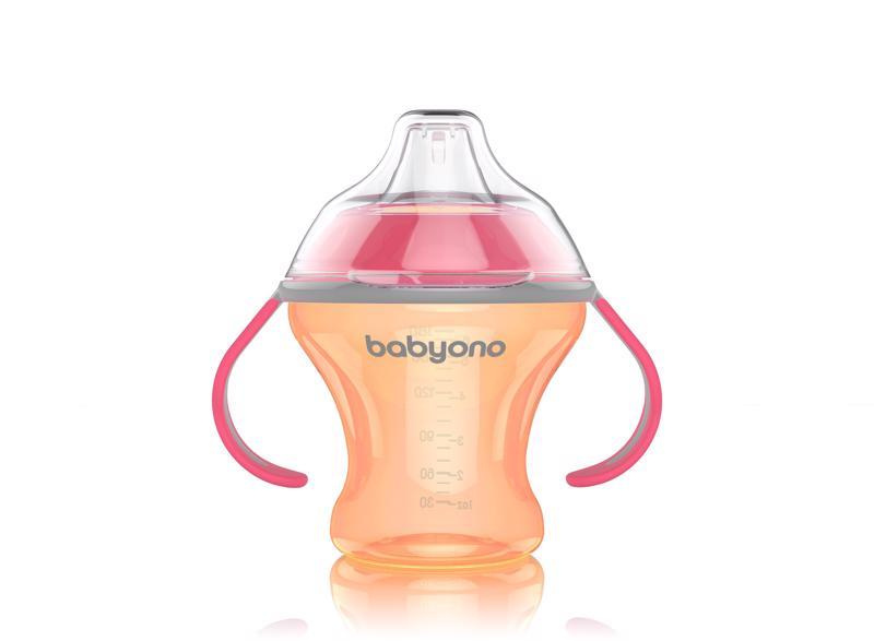 BABYONO Hrnek netekoucí s měkkým náustkem Natural Nursing 180 ml oranžová