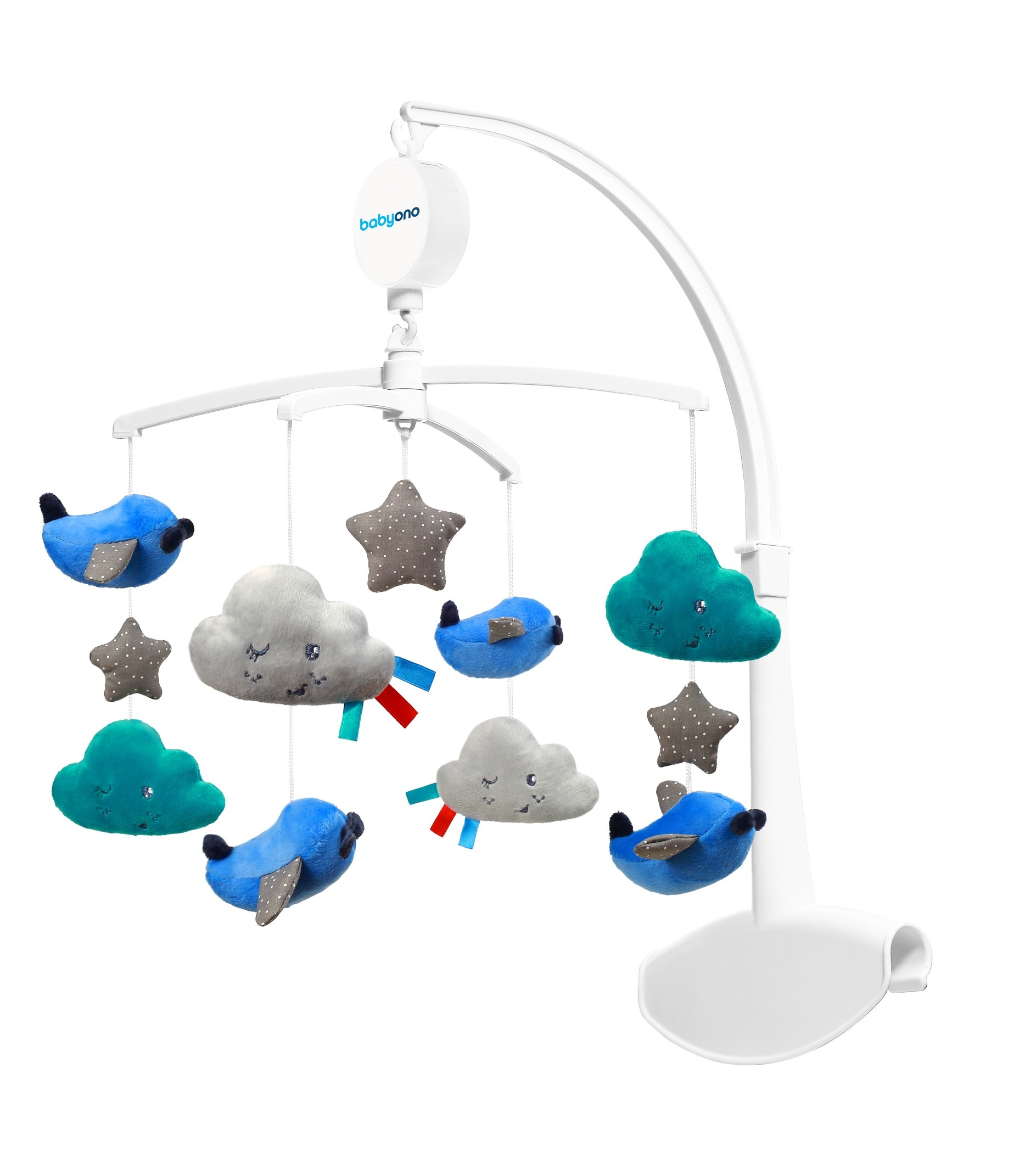 Univerzální hudební kolotoč je ideální pro snadné usínání vašeho malého drobečka. Veselá letadla a přátelské obláčky zaujmou jeho pozornost a příjemné melodie ho uklidní. Speciálně navržené držadlo umožňuje kolotoč umístit i k dřevěné a cestovní postýlce, a díky tomu můžete kolotoč vzít s sebou i na cesty. - příjemná melodie - podporuje rozvíjení schopností miminka - snadné složení - speciálně navržen držák – vhodný pro všechny postýlky BabyOno, většinu dostupných cestovních postýlek, jakož i dřevěné postýlky, u kterých tloušťka zábradlí není menší než 2 cm a větší než 2,7 cm Rozměry produktu: 37 cm x 32 cm x 9,5 cm Odstraňte všechny bezpečnostní prvky z hračky, které by mohly být nebezpečné pro dítě. Před každým podáním hračky dítěti zkontrolujte její kvalitu. Pouze nepoškozená hračka zajišťuje bezpečné používání pro vaše dítě. Hračku vyhoďte, jakmile si všimnete prvních známek poškození. Hra doporučována pod dohledem dospělé osoby. Hračka splňuje normu EN 71. Doporučujeme uchovat obal pro informaci. Obal uchovávejte na místě nepřístupném dětem. Obal a upevňovací prvky nejsou hračkou a mohou představovat nebezpečí pro zdraví dítět Adresa dodavatele: Babyono sp. z o.o., Kowalewicka 13, 60-002 Poznań, Poland. +48 61 83 90 520, info@babyono.pl, www.babyono.com