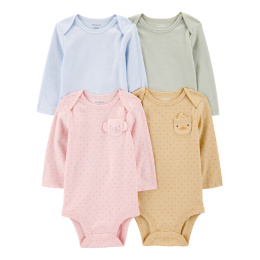 Všechny modely značky Carter's jsou vyrobeny ze super měkké bavlny a spoustou lásky. Body jsou základem výbavičky téměř každého maličkého děťátka. Navrženy jsou tak, aby byly velmi pohodlné pro nošení a v trendy barvách. Vlastnosti: - 4 ks v balení - body má překrytá ramena tzn. obálkový výstřih - body mají zpevněný výstřih, aby se neroztahoval používáním - patenty na zapínání mezi nožičkami, usnadňují přebalování - oblékání děťátka je jednodušší - příjemně měkký materiál - komfortní pro nošení - trendy moderní designy a barvy - použité patenty neobsahují nikl a jsou vhodné pro děti - dodáváno na ramínku Materiálové složení: 100% bavlna Údržba: Doporučujeme dodržovat prací symboly uvedené na etiketě výrobku. Pro praní doporučujeme použít prací prostředky značky Chicco. Naleznete na našem eshopu.