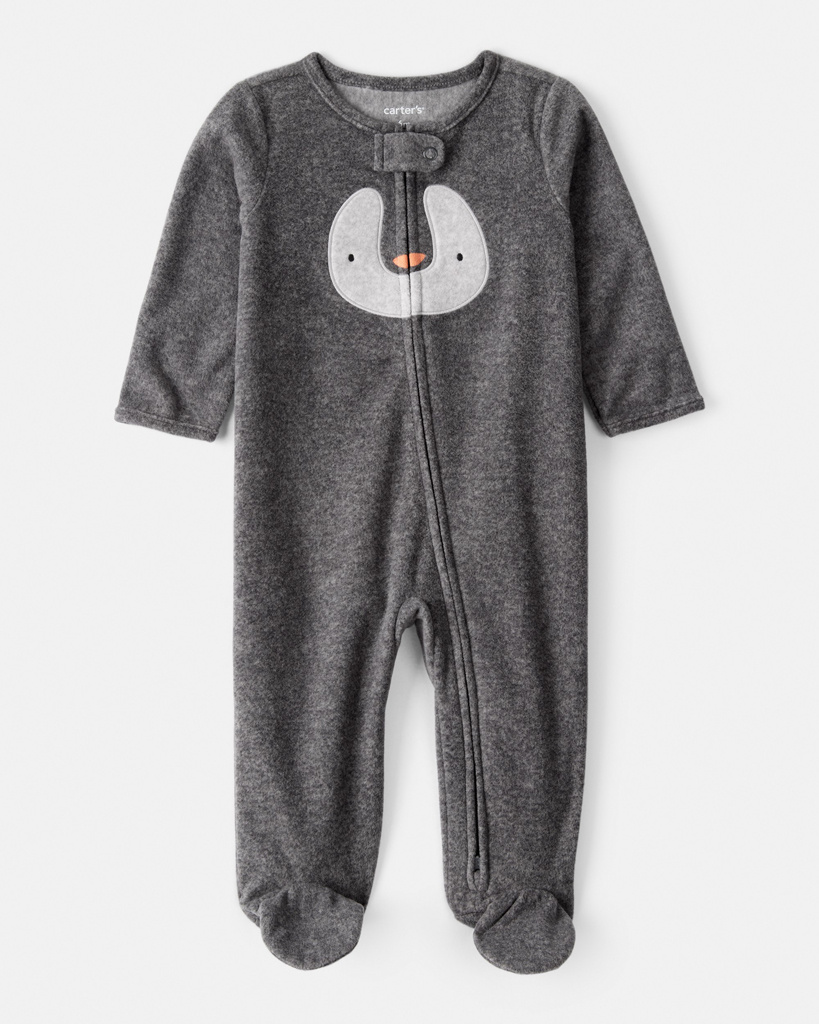 CARTER'S Overal na zip fleece Sleep & Play grey Penguin uni 9m/vel.74