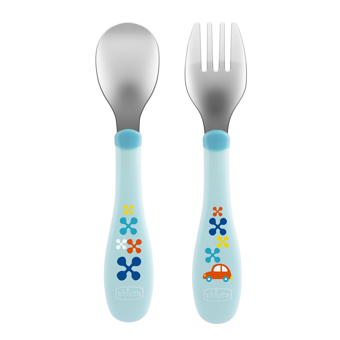CHICCO Lžička/vidlička nerez modrá 18m+