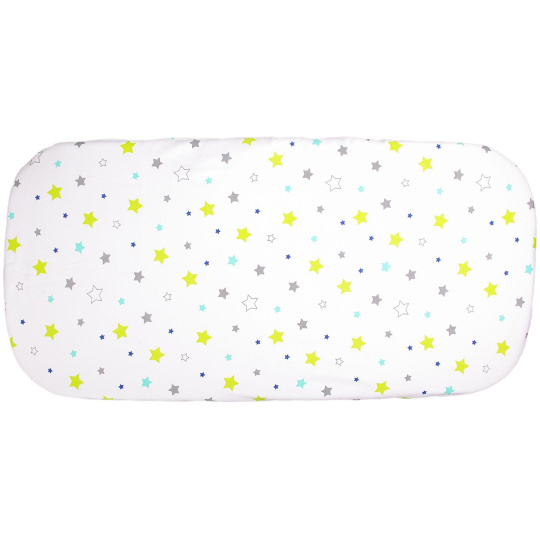 Klasické prostěradlo do kočárku vyrobené ze 100% bio-bavlny s motivem hvězdiček. Prostěradlo je vhodné na matraci 35 x 75 cm. Praní na 40 °C. Česká výroba.
