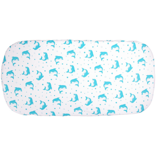 Klasické prostěradlo do kočárku vyrobené ze 100% bio-bavlny s motivem aqua delfínů. Prostěradlo je vhodné na matraci 35 x 75 cm. Praní na 40 °C. Česká výroba.