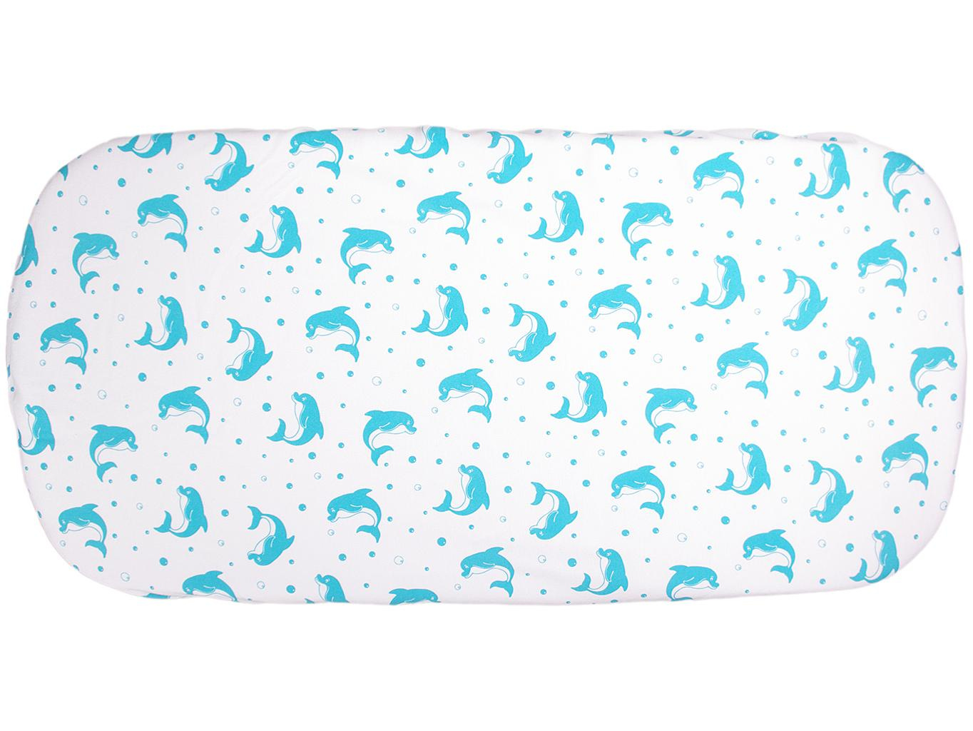 Klasické prostěradlo do kočárku vyrobené ze 100% bio-bavlny s motivem aqua delfínů. Prostěradlo je vhodné na matraci 35 x 75 cm. Praní na 40 °C. Česká výroba.
