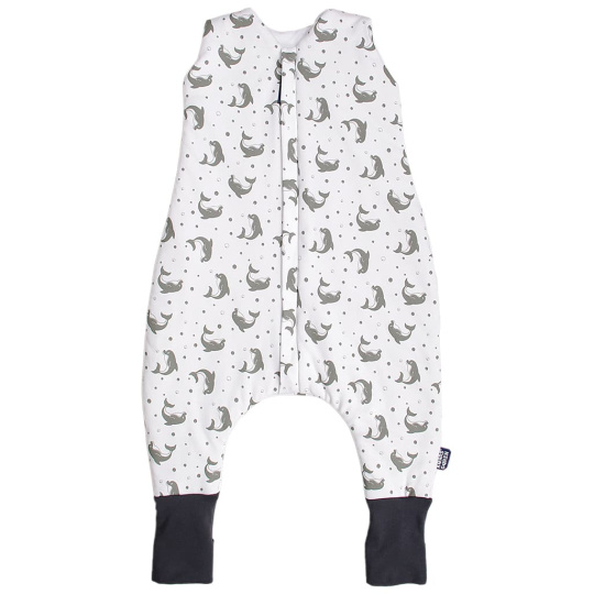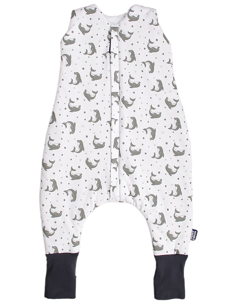 💙 Bio spací pytel s nožičkami 90 cm – šedí delfínci