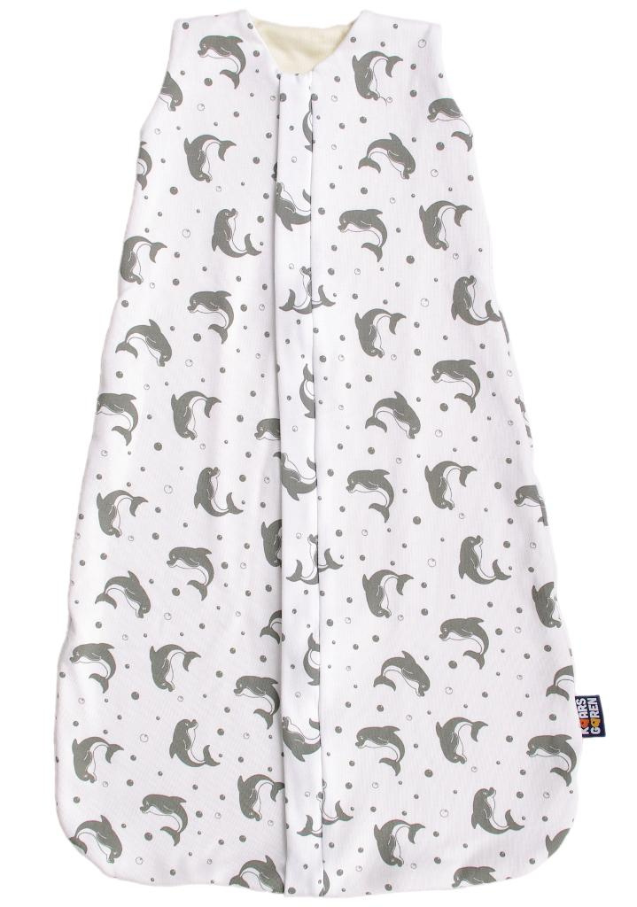 KAARSGAREN-Celoroční merino spací pytel 100 cm bio šedí delfínci