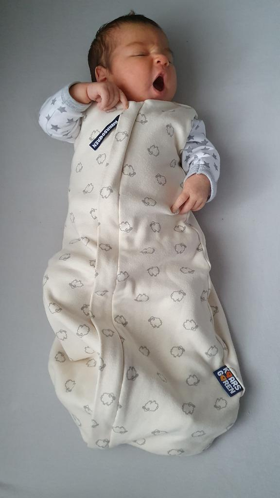 Spací pytel s podšívkou z úpletu z merino vlny. Vnější strana je ze 100% bio-bavlny. Délka spacího pytle je 60 cm - to je délka miminka od ramen k chodidlům. Lze prát v pračce na max 30°C program na vlnu.. Nepoužívat aviváž! Česká výroba.