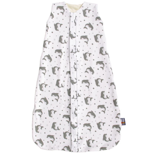 KAARSGAREN-Celoroční merino spací pytel 80 cm bio šedí delfínci