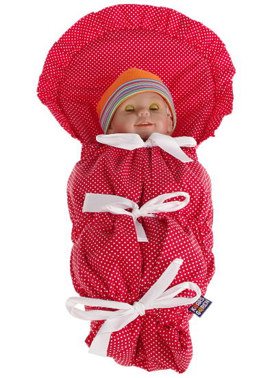 Potah klasické zavinovačky s trojitým vázáním v červené barvě s motivem bílých puntíků. K potahu je nutné dokoupit ještě výplň, aby byla zavinovačka kompletní. Doporučujeme pořídit dva, nebo tři potahy a jednu výplň. Povlak zavinovačky je ze 100% bavlny a lze ho pát v pračce na 40° C, velikost povlaku a tedy i zavinovačky je cca 115 x 33 cm. Zavinovačka je vhodná jako výbava do porodnice, protože novorozená miminka jsou zvyklá na těsný prostor maminčina bříška a po zavinutí se cítí bezpečně a rychle se zklidní.