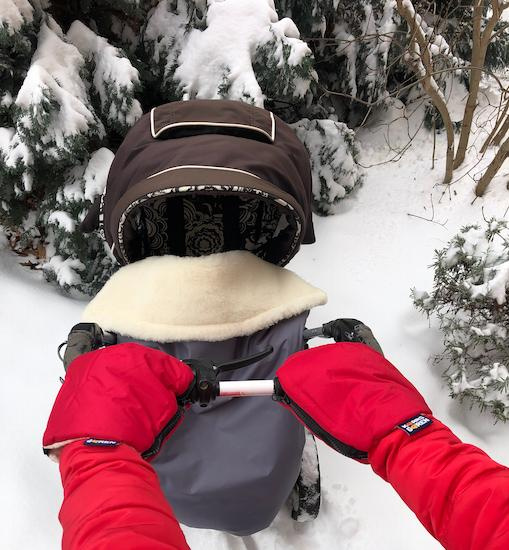 Jeden pár červených rukavic na všechny typy rukojetí kočárků. Vnější vrstva rukavic je z nepromokavé plášťoviny, uvnitř je vrstva oteplovacího rouna a podšívka je z biobavlny. Biobavlna je vyrobená z GOTS certifikovanej priadze. Na rukojeti v celku se rukavičky navléknou a zapnou se zipy, na oddělené rukojeti golfových kočárků se rukavičky nasadí připraveným otvorem a připevní se gumičkou. Velikost je univerzální, praní na 30 °C, vyrobeno v České republice.