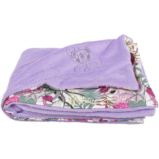 Dětská oboustranná deka z dvou vrstev materiálu Wellsoftu a bavlny. Vrchní strana je z Wellsoftu (100% polyester) ve fialové barvě s výšivkou koaly a spodní strana je ze 100% bavlny s potiskem koal. Rozměr deky je 70 x 100 cm. Praní na 30 °C. Vyrobeno v ČR.
