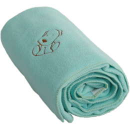 Deka s výšivkou pejska v mentolové barvě. Deka je vyrobená z fleece materiálu (100% polyester), její rozměr je 70 x 100 cm. Praní na 30° C. Česká výroba.