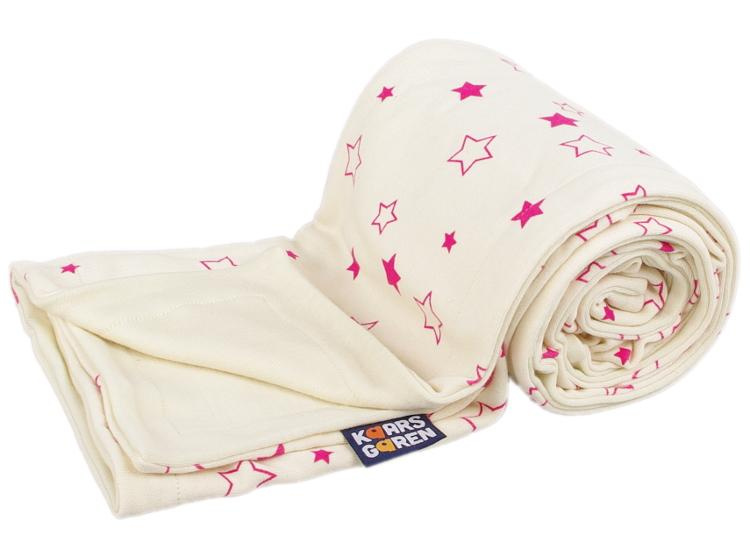 KAARSGAREN-Dětská merino deka biobavlna – fuchsiové hvězdičky