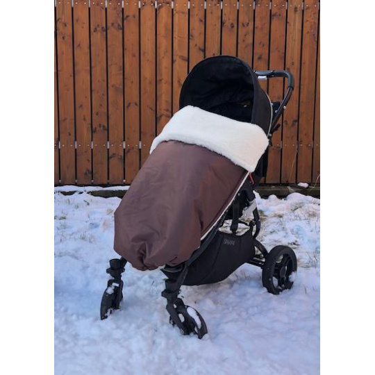 Nepromokavá hnědá deka do kočárku. Složení materiálu je: vnější strana plášťovina, výplň vatelín, podšívka merino vlna. Rozměr 70 x 100 cm. Vlastností merina je, že pouští chloupky (líná). Pokud začne línat více stačí merino vysát vysavačem, línání poté ustane, nebo se výrazně sníží. Ruční praní v přípravcích na vlnu. Při praní se nesmí používat aviváž! Nelze sušit v sušičce na prádlo! Česká výroba.