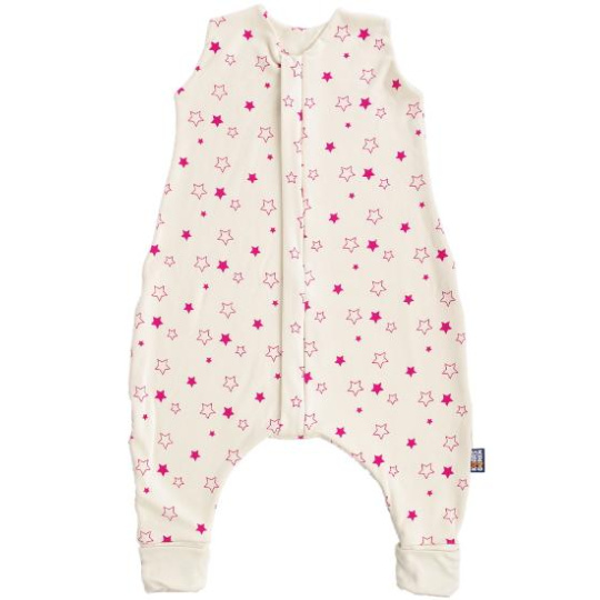 Letní spací pytel pro miminko s otvory pro nohy v přírodní barvě s motivem fuchsiových hvězdiček, miminko v něm může volně kopat nožičkami. Délka spacího pytle je cca 70 cm, lze jej prát v pračce při 40 °C. Spací pytel má uprostřed zip a lze jej zcela otevřít, navíc má zip látkovou krytku, která zabraňuje přiskřípnutí krku do zipu. Spací pytel je ušitý ze dvou vrstev: vrchní materiál 100% biobavlna, podšívka 100% biobavlna. Česká výroba.