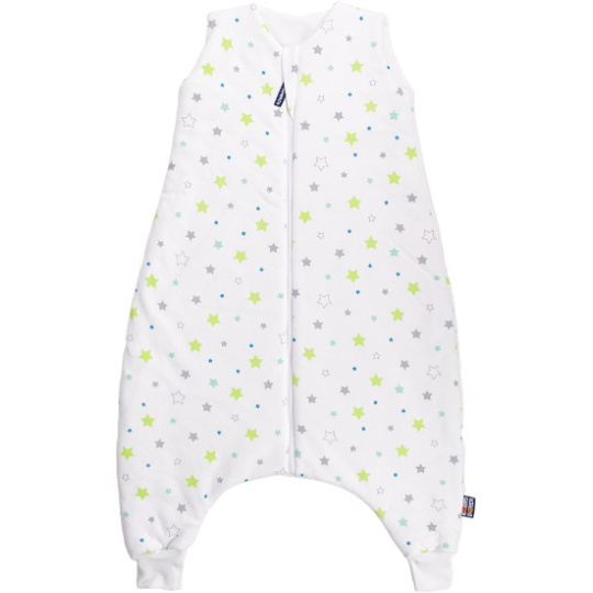 Dětský letní spací pytel s otvory pro nohy v bílé barvě a s motivem hvězdiček. Délka spacího pytle je cca 100 cm, lze jej prát v pračce při 30 °C. Spací pytel má uprostřed zip a lze jej zcela otevřít, navíc má zip látkovou krytku, která zabraňuje přiskřípnutí krku do zipu. Spací pytel je ušitý ze dvou vrstev: vrchní materiál 100% biobavlna, podšívka 100% biobavlna. Česká výroba.