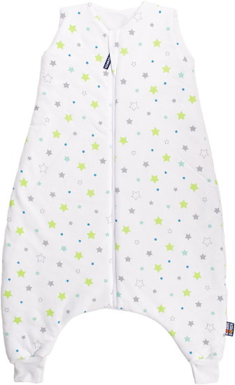 Dětský letní spací pytel s otvory pro nohy v bílé barvě a s motivem hvězdiček. Délka spacího pytle je cca 100 cm, lze jej prát v pračce při 30 °C. Spací pytel má uprostřed zip a lze jej zcela otevřít, navíc má zip látkovou krytku, která zabraňuje přiskřípnutí krku do zipu. Spací pytel je ušitý ze dvou vrstev: vrchní materiál 100% biobavlna, podšívka 100% biobavlna. Česká výroba.