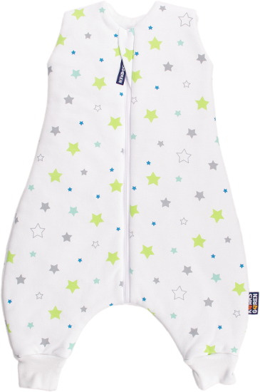 Letní spací pytel pro novorozené miminko s otvory pro nohy v bílé barvě a s motivem hvězdiček, miminko v něm může volně kopat nožičkami. Délka spacího pytle je cca 60 cm, lze jej prát v pračce při 40 °C. Spací pytel má uprostřed zip a lze jej zcela otevřít, navíc má zip látkovou krytku, která zabraňuje přiskřípnutí krku do zipu. Spací pytel je ušitý ze dvou vrstev: vrchní materiál 100% biobavlna, podšívka 100% biobavlna. Česká výroba.