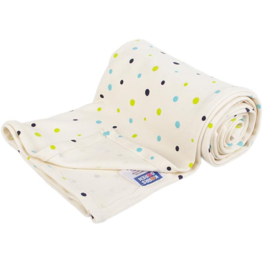 Letní velká deka z bio-bavlny s motivem puntíků. Rozměr deky je cca 150 x 200 cm. Praní na 40 °C. Bio-bavlna je vyrobená z GOTS certifikované příze. Deka je vyrobená v České republice.