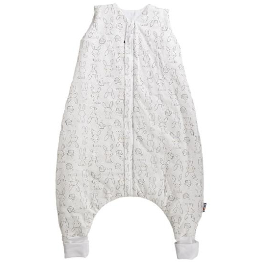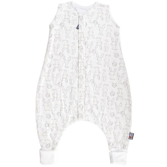 Letní dětský spací pytel s otvory pro nohy ve smetanové barvě a s motivem zajíčků, dítě v něm může volně kopat nožičkami. Délka spacího pytle je cca 100 cm, lze jej prát v pračce při 30 °C. Délka spacího pytle odpovídá výšce dítěte k ramenům. Spací pytel má uprostřed zip a lze jej zcela otevřít v obou směrech, navíc má zip látkovou krytku, která zabraňuje přiskřípnutí krku do zipu. Spací pytel je ušitý ze dvou vrstev: vrchní materiál 100% bavlna, podšívka 100% bambusová viskóza. Česká výroba.