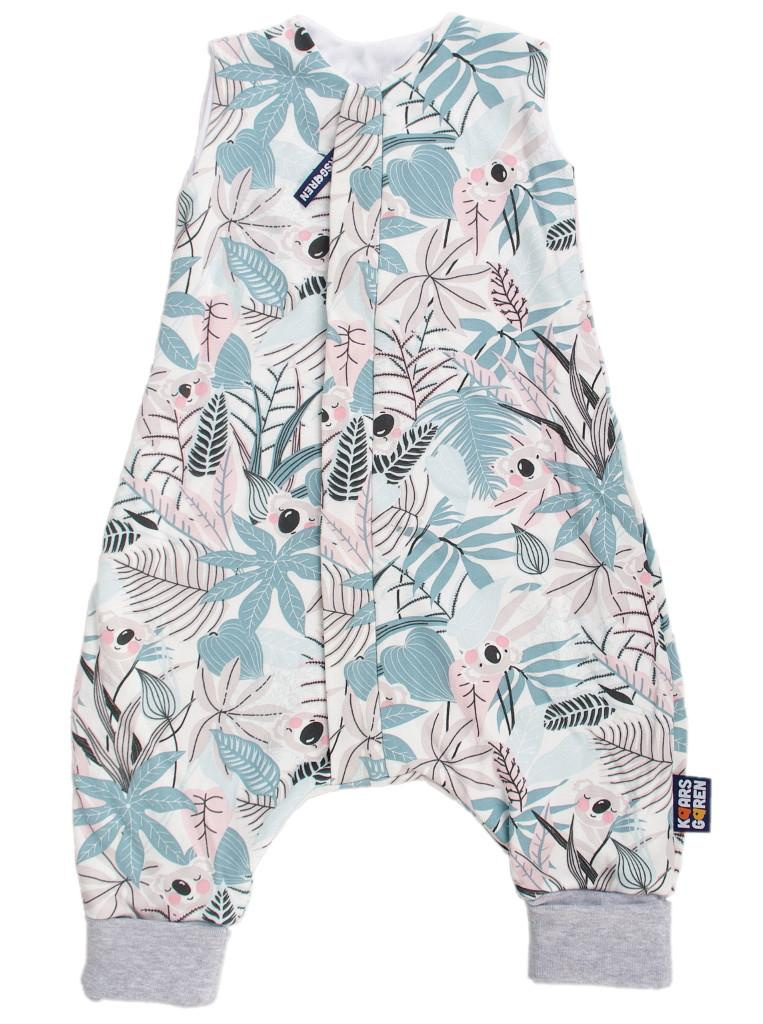 Letní spací pytel pro novorozené miminko s otvory pro nohy v mentolové barvě s motivem koal, miminko v něm může volně kopat nožičkami. Délka spacího pytle je cca 60 cm, lze jej prát v pračce při 30 °C. Délka spacího pytle odpovídá výšce dítěte k ramenům. Spací pytel má uprostřed zip a lze jej zcela otevřít v obou směrech, navíc má zip látkovou krytku, která zabraňuje přiskřípnutí krku do zipu. Náplety u nožiček lze přehnout a použít jako integrované ponožky. Spací pytel je ušitý ze dvou vrstev: vrchní materiál 100% bavlna, podšívka 100% bambusová viskóza. Česká výroba.