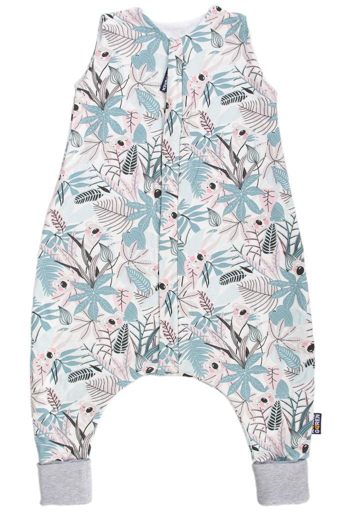 Letní dětský spací pytel s otvory pro nohy v mentolové barvě s motivem koal, dítě v něm může volně kopat nožičkami. Délka spacího pytle je cca 80 cm, lze jej prát v pračce při 30 °C. Délka spacího pytle odpovídá výšce dítěte k ramenům. Spací pytel má uprostřed zip a lze jej zcela otevřít v obou směrech, navíc má zip látkovou krytku, která zabraňuje přiskřípnutí krku do zipu. Náplety u nožiček lze přehnout a použít jako integrované ponožky. Spací pytel je ušitý ze dvou vrstev: vrchní materiál 100% bavlna, podšívka 100% bambusová viskóza. Česká výroba.