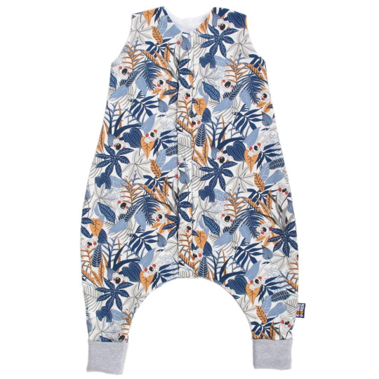 Letní dětský spací pytel s otvory pro nohy v modré barvě s motivem koal, dítě v něm může volně kopat nožičkami. Délka spacího pytle je cca 90 cm, lze jej prát v pračce při 30 °C. Délka spacího pytle odpovídá výšce dítěte k ramenům. Spací pytel má uprostřed zip a lze jej zcela otevřít v obou směrech, navíc má zip látkovou krytku, která zabraňuje přiskřípnutí krku do zipu. Náplet u nožiček lze přehnout a využít jako integrované ponožky. Spací pytel je ušitý ze dvou vrstev: vrchní materiál 100% bavlna, podšívka 100% bambusová viskóza. Česká výroba.