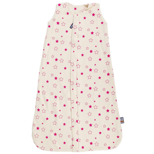 Spací pytel ze dvou vrstev 100% bio-bavlny s motivem fuchsiových hvězdiček. Délka spacího pytle je 110 cm - to je délka dítěte od ramen k chodidlům. Praní na 40 °C. Spací pytel není uvnitř zateplený a proto je vhodný pro teplé letní noci. Česká výroba.