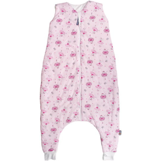 Letní dětský spací pytel s otvory pro nohy v růžové barvě a s motivem baletek, dítě v něm může volně kopat nožičkami. Délka spacího pytle je cca 110 cm, lze jej prát v pračce při 30 °C. Délka spacího pytle odpovídá výšce dítěte k ramenům. Spací pytel má uprostřed zip a lze jej zcela otevřít, navíc má zip látkovou krytku, která zabraňuje přiskřípnutí krku do zipu. Spací pytel je ušitý ze dvou vrstev: vrchní materiál 100% bavlna, podšívka 100% bambusová viskóza. Česká výroba.