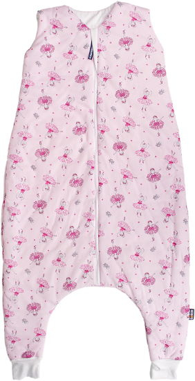 Letní dětský spací pytel s otvory pro nohy v růžové barvě a s motivem baletek, dítě v něm může volně kopat nožičkami. Délka spacího pytle je cca 110 cm, lze jej prát v pračce při 30 °C. Délka spacího pytle odpovídá výšce dítěte k ramenům. Spací pytel má uprostřed zip a lze jej zcela otevřít, navíc má zip látkovou krytku, která zabraňuje přiskřípnutí krku do zipu. Spací pytel je ušitý ze dvou vrstev: vrchní materiál 100% bavlna, podšívka 100% bambusová viskóza. Česká výroba.