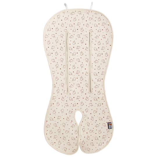 Letní univerzální vložka do všech typů kočárků s otvory pro protažení bezpečnostních pásů, velikost cca 38 x 82 cm. Vložka pasuje i do všech dětských autosedaček velikosti 0+ (0 až 13 kg), lze použít i v autosedačkách velikosti 1 (9 až 18 kg). Vrchní strana je ze 100% bio-bavlny s motivem králíčků. Spodní strana je ze 3D polyesteru, který zajistí proudění vzduchu. Praní na 30 °C. Vyrobené v České republice.