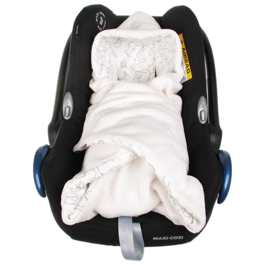 - 🚗 Vhodná do většiny autosedaček (vajíček) i kočárků – otvory pro 3bodové pásy