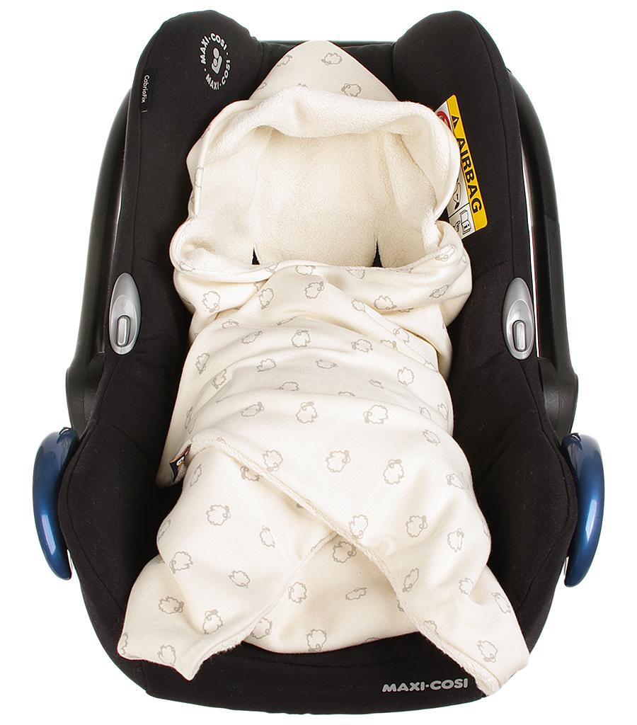Letní zavinovačka do dětské autosedačky s tříbodovým zapínáním. Zavinovačka je s motivem beránků, je vyrobená ze 100% bio-bavlny, na dotyk je měkoučká a heboučká. Rozměr cca 75 x 75 cm, praní na 40 °C. Použití - vložit zavinovačku do autosedačky, otvory protáhnout bezpečnostní pásy, připoutat miminko, podle teploty zavinovačku zavinout a zapnout na suchý zip, nebo nechat otevřenou. Česká výroba.