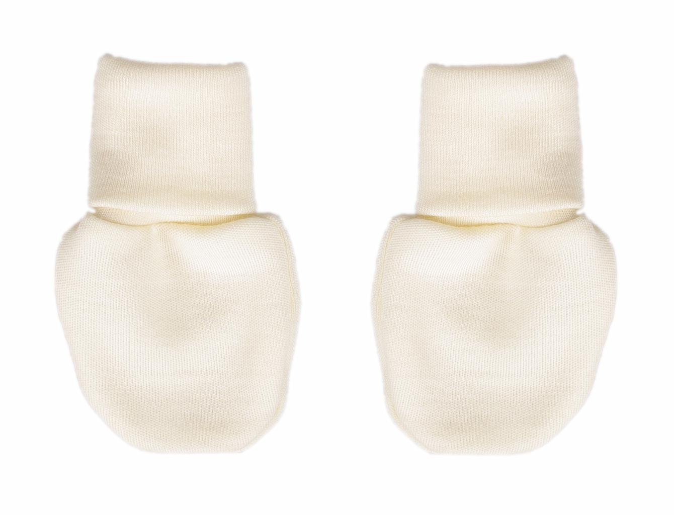 Bezpalcové rukavičky pro novorozené miminko. Rukavičky jsou vyrobené ze 100% merino vlny - úpletu. Merino vlna je hebká na dotek a nekouše jako klasická vlna, má výborné termoregulační vlastnosti a hřeje i když je mokrá. Rukavice ochrání miminko před poškrábáním obličeje a udržují ručičky v teple. Lze prát v pračce na 30 °C na vlněný program v přípravcích na vlnu. Při praní nepoužívat aviváž, ta vlnu zničí. Nesušit v sušičce. Česká výroba.