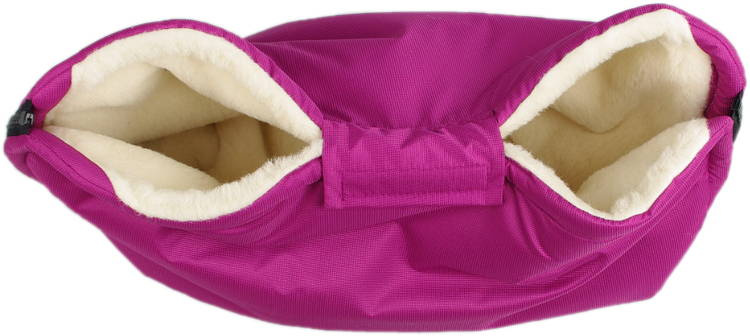 Rukávník na kočárek s nepromokavou vnější vrstvou. Podšívka je z merino vlny a výplň z oteplovacího rouna. Ruční praní, nepoužívat aviváž. Česká výroba.