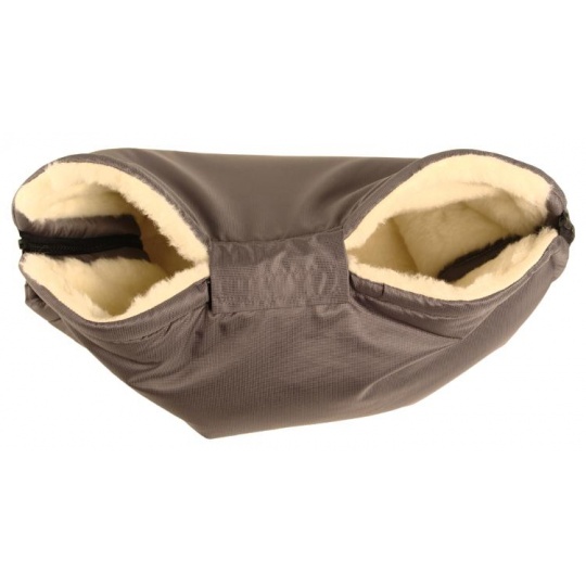 Rukávník na kočárek s nepromokavou vnější vrstvou. Podšívka je z merino vlny a výplň z oteplovacího rouna. Ruční praní, nepoužívat aviváž. Česká výroba.