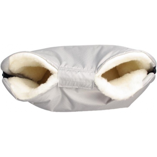 Světle šedý rukávník na kočárek s nepromokavou vnější vrstvou. Podšívka je z merino vlny a výplň z oteplovacího rouna. Ruční praní, nepoužívat aviváž. Česká výroba.