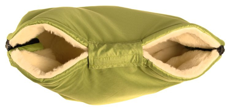 Rukávník na kočárek s nepromokavou vnější vrstvou. Podšívka je z merino vlny a výplň z oteplovacího rouna. Ruční praní, nepoužívat aviváž. Česká výroba.