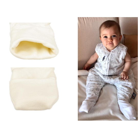 Nožičkový spací pytel s podšívkou z úpletu z merino vlny. Vnější strana je ze 100% bio-bavlny. Délka spacího pytle je 100 cm - to je délka miminka od ramen ke kotníkům. Zip umožní otevření spacího pytle po celé délce v obou směrech a má látkovou krytku, která zabraňuje přiskřípnutí krku do zipu. Lze prát v pračce na max 30°C program na vlnu.. Nepoužívat aviváž! Česká výroba.
