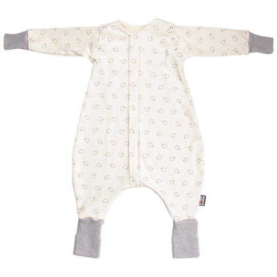 Nožičkový spací pytel s odepínacími rukávy, podšívka je z úpletu z merino vlny. Vnější strana je ze 100% bio-bavlny s motivem beránků. Délka spacího pytle je 70 cm - to je délka miminka od ramen ke kotníkům. Zip umožní otevření spacího pytle po celé délce v obou směrech a má látkovou krytku, která zabraňuje přiskřípnutí krku do zipu. Rukávy se připínají pomocí druků. Ruční praní do 30 °C. Nepoužívat aviváž! Česká výroba.