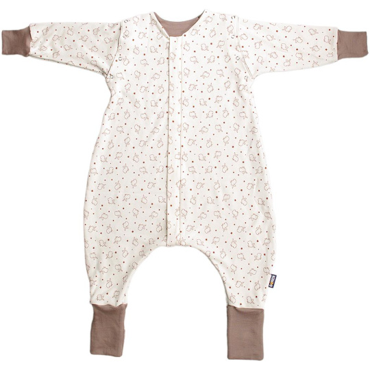 KAARSGAREN-Merino spací pytel s rukávy 90 cm bio králíci béžové nohavice