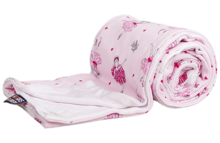 Oboustranná deka z bambusové viskózy a bavlny. Vrchní strana je z bavlny s motivem baletek a podšívka je z bambusové viskózy. Velikost deky je 70 x 100 cm. Praní na 40° C. Česká výroba.