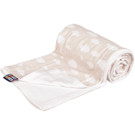 Oboustranná deka z bambusové viskózy a bavlny. Vrchní strana je z bavlny s motivem obláčků a podšívka je z bambusové viskózy. Velikost deky je 70 x 100 cm. Praní na 40° C. Česká výroba.