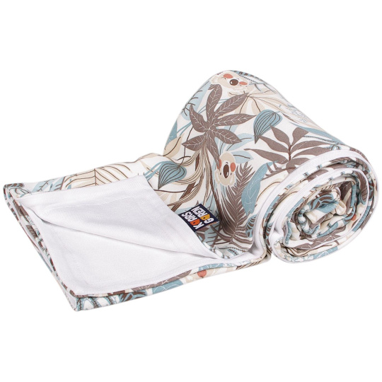 Oboustranná deka z bambusové viskózy a bavlny. Vrchní strana je z bavlny s motivem hnědých koal a podšívka je z bambusové viskózy. Velikost deky je 70 x 100 cm. Praní na 40° C. Česká výroba.