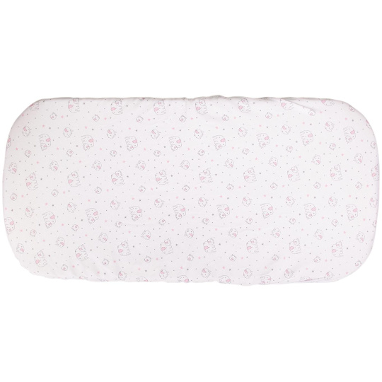 Klasické prostěradlo do kočárku vyrobené ze 100% bavlny (úpletu) s motivem růžových sloníků. Prostěradlo je vhodné na matraci 35 x 75 cm. Praní na 40 °C. Česká výroba.