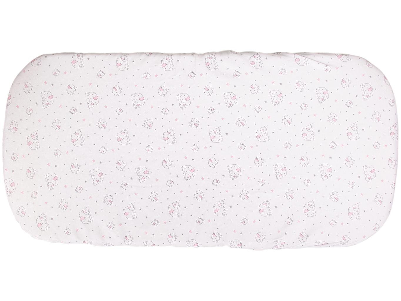 Klasické prostěradlo do kočárku vyrobené ze 100% bavlny (úpletu) s motivem růžových sloníků. Prostěradlo je vhodné na matraci 35 x 75 cm. Praní na 40 °C. Česká výroba.