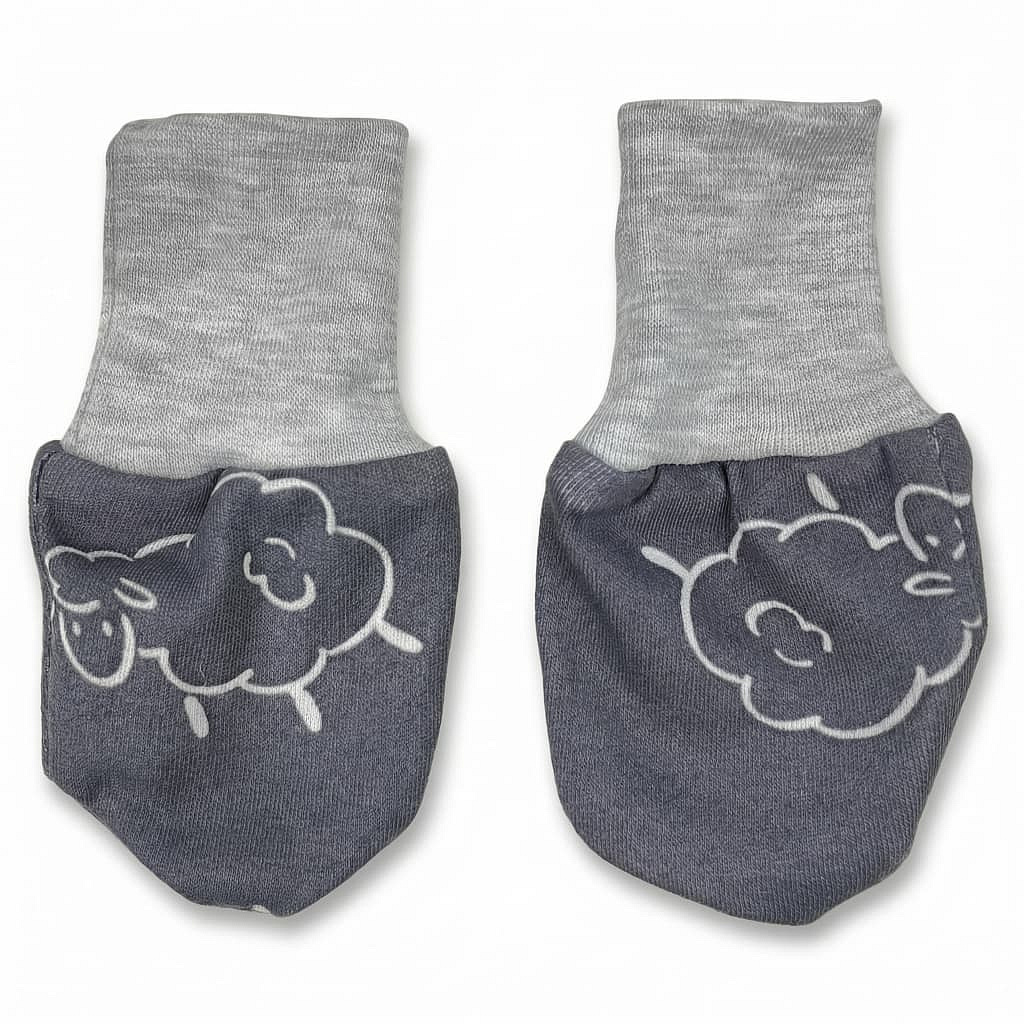 Bavlněné rukavičky pro miminko se šedou ovečkou
